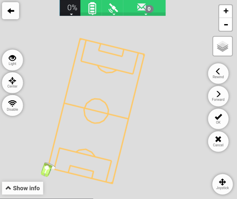 The primary function behind selecting segments is to select a new starting point for the Turf Tank One. This can be used in scenarios where the Turf Tank One has stopped during operation (either on purpose or due to an error). It can also be used to test if a specific line is placed correctly in reference to the surroundings, i.e. the center line of a soccer field.